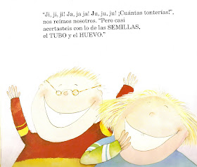En inglés, el libro se titula Mummy Laid an Egg! Los niños son aquí los perfectos protagonistas, ellos son los que enseñan a los padres, que se ven superados por el conocimiento de los niños. En fin, una obra llena de ironía, que enseña que los niños no son tontos.